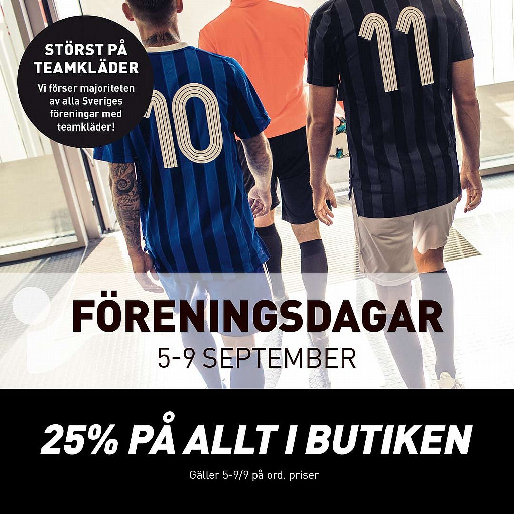 bjuder vi in dig till föreningsdagar 5-9 september på Intersport. Få 25% rabatt