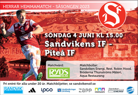Hemmamatch för herrarna på söndag 4/6. Piteå IF står för motståndet på Jernvallen. Piteå huserar i nedre delen av tabellen men kommer från en vinst med 4-2 senast mot Sollentuna där man gjorde tre mål på dryga 20 minuter i inledningen av matchen. Våra rödvästar tog som bekant senast hem segern i seriefinalen i Uppsala mot Dalkurd med 2-1 efter en stark insats.