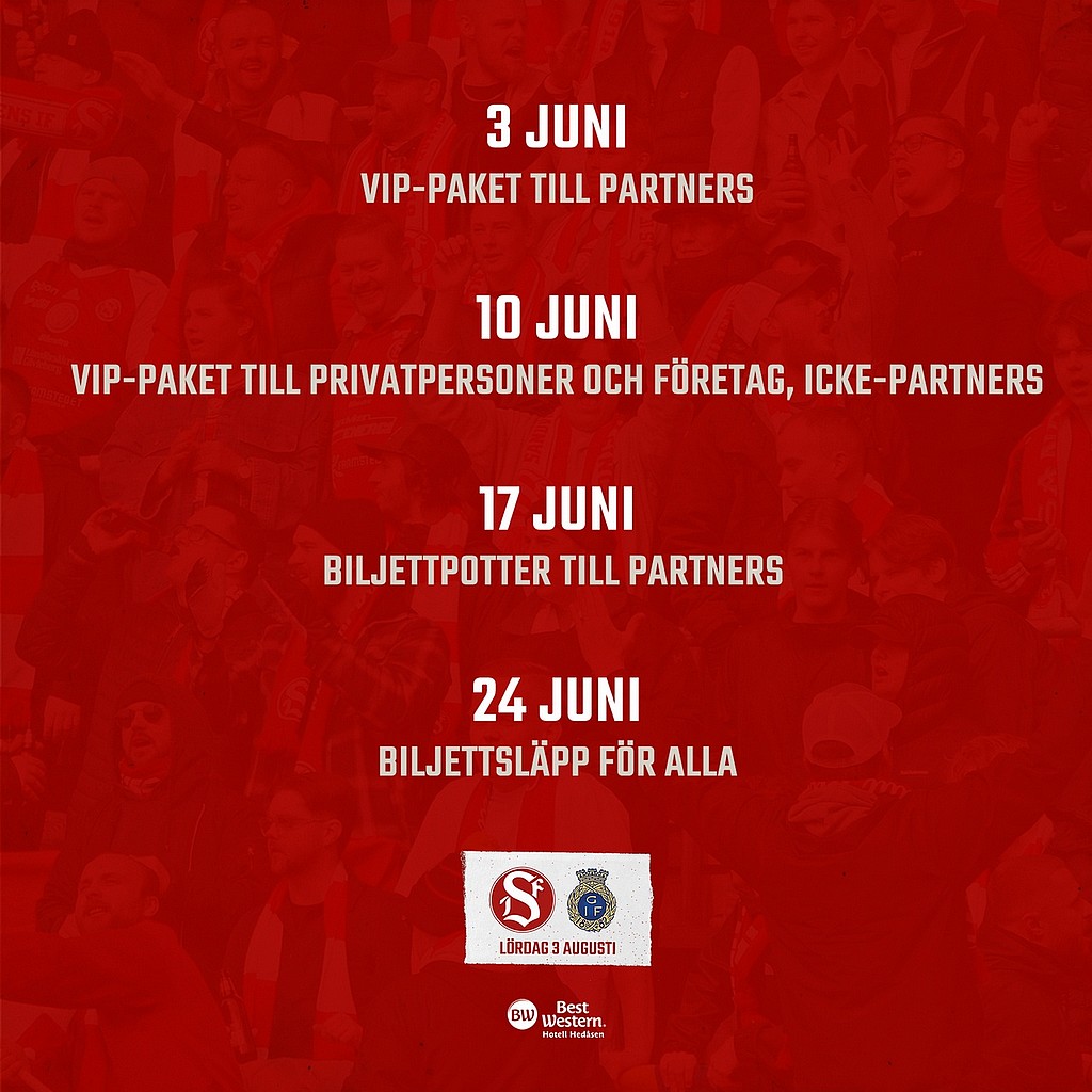 I måndags släppte vi VIP-paket till partners innehållandes mat och bord på Trebo och biljetter till matchen på Jernvallen.