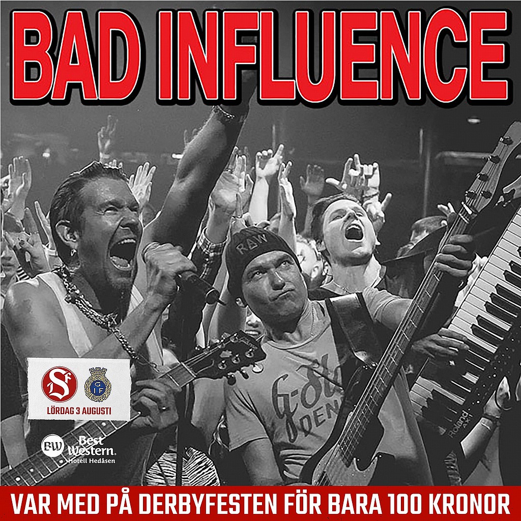 Nu har vi bokat Bad Influence, av många sett som Sveriges bästa partyband, och släpper samtidigt särskilda biljetter till Derbyfesten i Trebo.