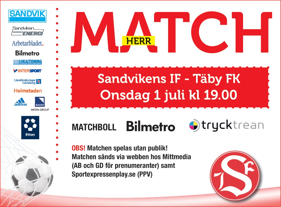 Sandvikens IF matcher kan även ses på arbetarbladet.se och gd.se för betalande prenumeranter.