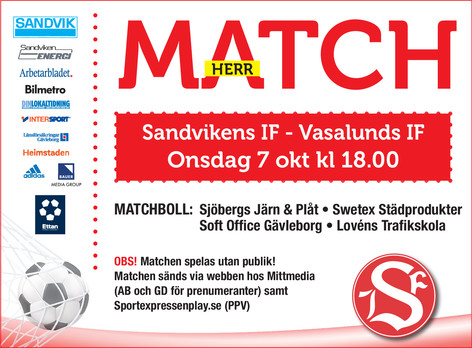Sandvikens IF matcher kan även ses på arbetarbladet.se och gd.se för betalande prenumeranter.