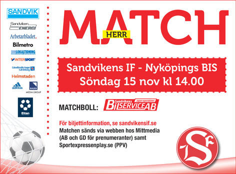 Sandvikens IF matcher kan även ses på arbetarbladet.se och gd.se för betalande prenumeranter.