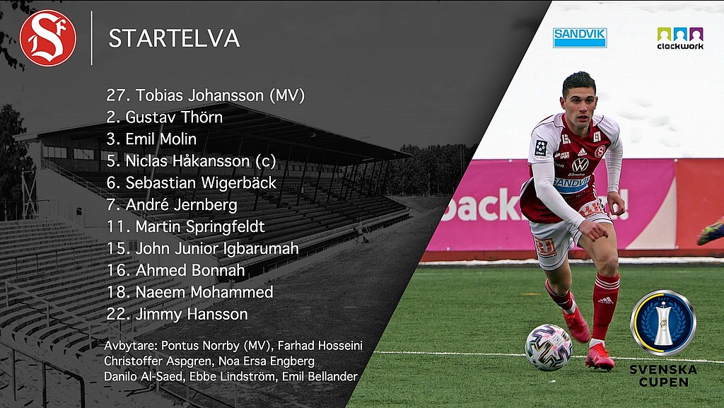 SIF:s chefstränare Martin Falk och Thomas Gabrielsson har, tillsammans med assisterande tränarna Jens Dahlqvist och Johnny Jakobsson, tagit ut följande spelare till dagens match mot IFK Norrköping.