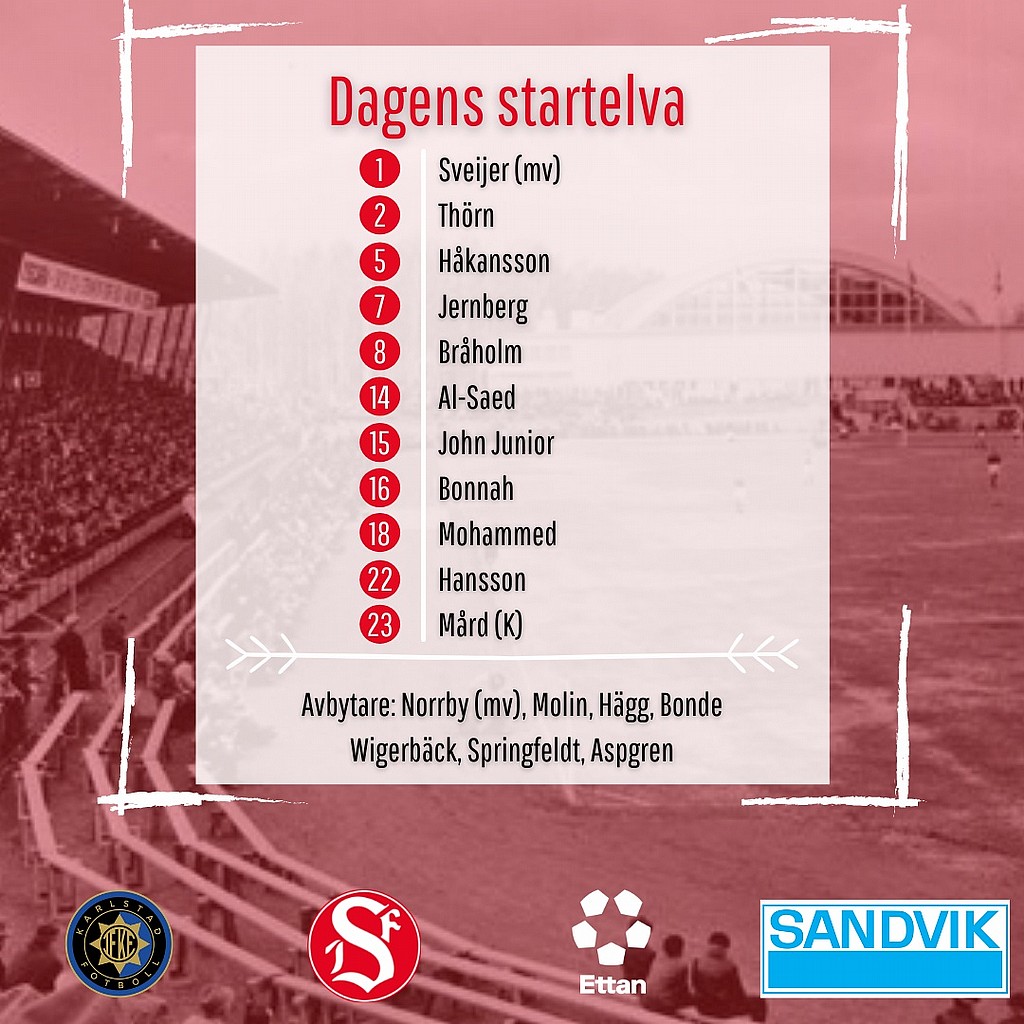 🔵⚫️ Jernberg startar mot sitt gamla lag🇳🇬 John Junior direkt in i elvan efter sin skada🏃Springfeldt tillbaka i matchtruppen🔙 Jimmy Hansson gör sin första start för säsongen