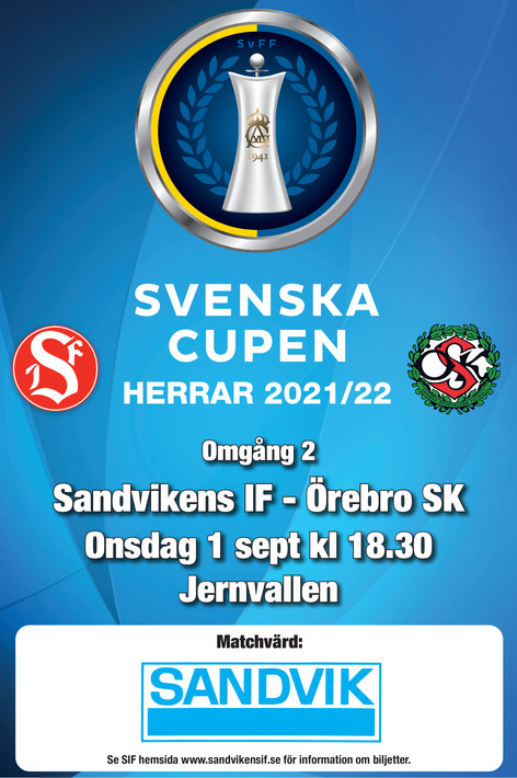 Nu startar nästa äventyr i Svenska Cupen 2021/22. Omgång 2 spelas onsdagen den 1:a september på VM-arenan mot allsvenska Örebro SK. Segrarna i omgång 2 går vidare till cupens gruppspel, som spelas under vårvintern 2022. OBS! Avspark kl. 18:30.