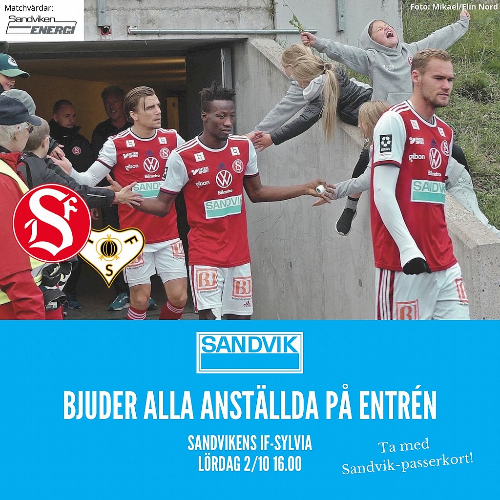 På lördag möter herrarna Sylvia hemma på Jernvallen och då bjuder Sandvik alla sina anställda på entrén.
