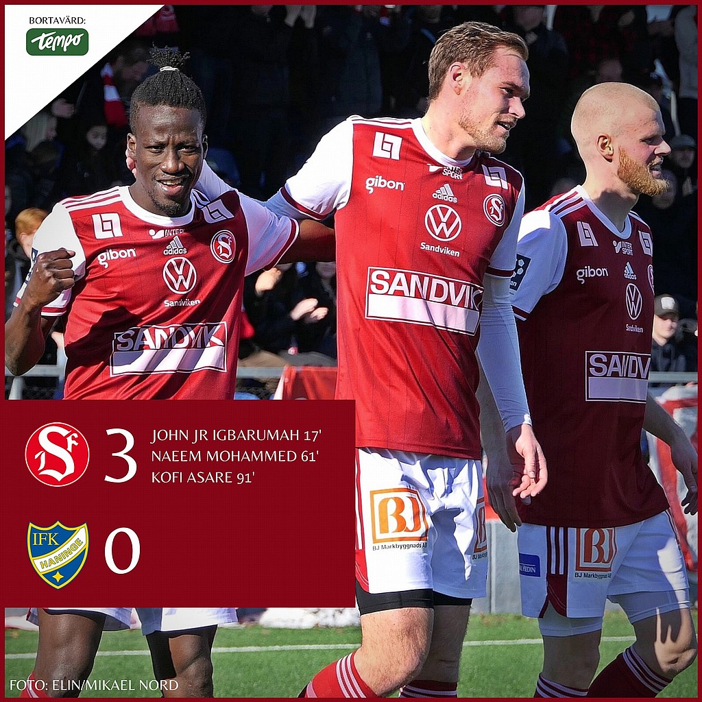 Efter bara en dryg kvart satte John Junior Igbarumah ettan. I början av andra halvlek hade hemmalaget några farliga chanser, bland annat en frispark i ribban, men på det stora hela var det en kontrollerad rödvit seger.