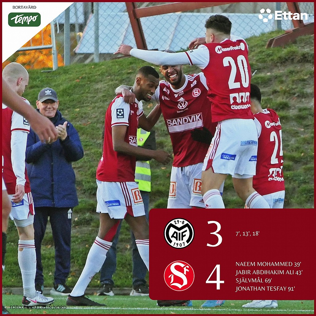 Det skulle dröja till matchminut 91 innan Jonathan Tesfay satte huvudet till ett inlägg, återigen från Springfeldt. 3-4 och euforin var då total på Idrottsparken i Motala.