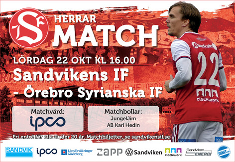 Lördagen 22/10 är det avspark kl. 16:00 då i tabellen fjärdeplacerade Örebro Syrianska IF hälsas välkomna till Jernvallen och Sandviken.
