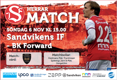 Sista seriematchen för i år för herrarna på söndag. Vi hälsar BK Forward från Örebro välkomna till Jernvallen och Sandviken.