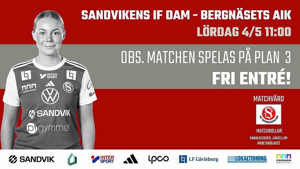 Dagens match spelas på Plan 3 med anledning av herrarnas match mot IK Brage. Det kommer som vanligt finnas en kiosk, men med lite mindre utbud än vanligt.
