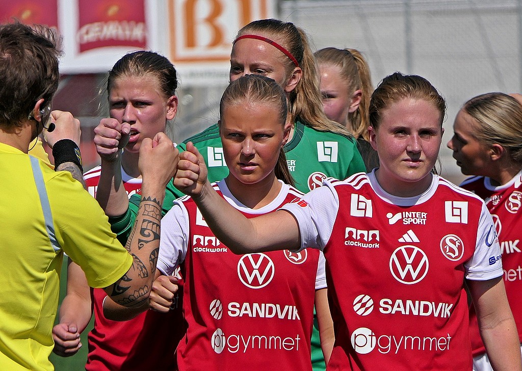 Rödvästarna startade matchen lysande och redan i den tredje minuten dribblade Linnea Strand sig in i straffområdet och fixade en straff som Klara Kempe Kivi stensäkert satte till 1-0.