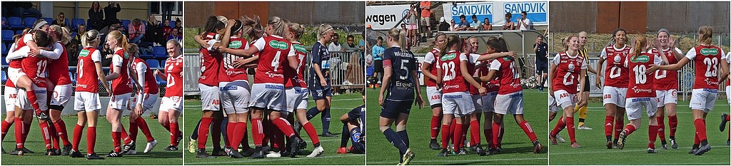 Demi Pierre spred sitt namn snabbt efter att ha tryckt dit både 1 och 2 – 0 inom loppet av 6 minuter. Ett äkta hattrick var tydligen på väg bara minuterna senare men hon fick nöja sig med att sätta sin tredje boll i matchminut 65 istället. Med hjälp av Hayley Dowd och Malin Markström kunde siffrorna skrivas till 5–0 för rödvästarna som tog de 3 sista poängen i vårens serie.