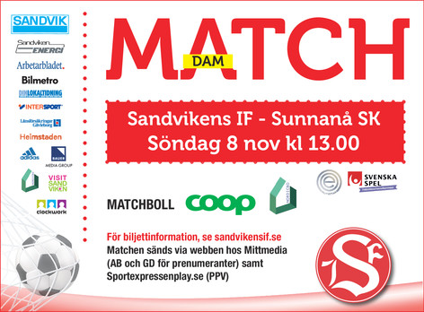 Dam: SIF - Sunnanå SK, söndag 8/11 kl. 13:00