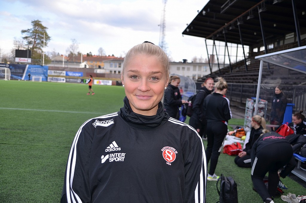 Genom ett samarbetsavtal med Djurgården lånades hon in till Sandvikens IF under tre matcher i slutet av förra säsongen då laget kämpade om att stanna kvar i Elitettan. Hon trivdes så bra att nu valt att fortsätta hos Rödvästarna, trots att laget åkt ner en division.