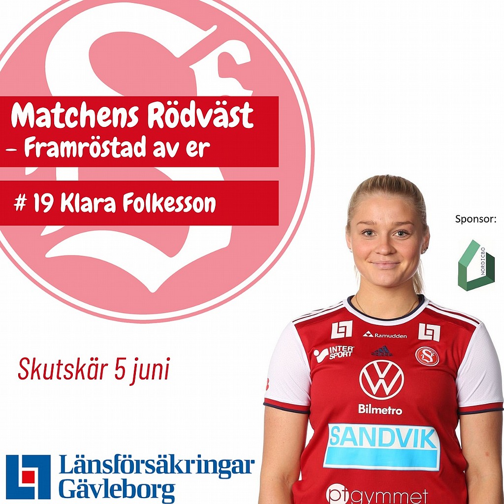 Klara Folkesson (41,7% av rösterna) valdes ut av er supportrar som Matchens Rödväst under Superlördagen.