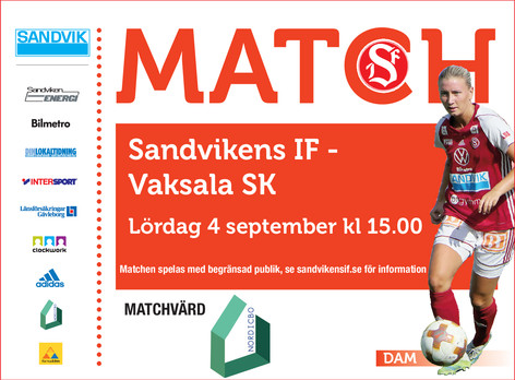Damerna spelar mot Vaksala SK i Division 1 Norra Svealand lördagen den 4/9. Matchen spelas på VM-arenan.