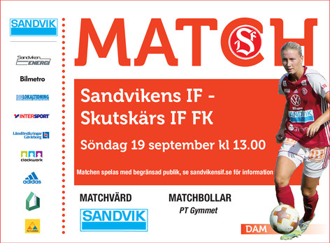 OBS! Vid matcher med Sandvik som matchvärd är det under normala förhållanden fri entré för Sandvik-anställda. På grund av publikrestriktioner så flyttar vi det till nästkommande hemmamatch för damerna, mot Avesta AIK söndagen den 10:e oktober då publikrestriktioner tas bort. Fri entré på Avesta-matchen alltså för samtliga som visar sitt Sandvik-passerkort i entré "grinden".
