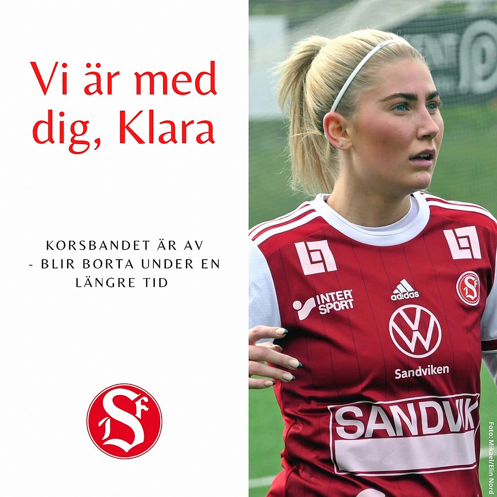 Nu väntar operation och sedan rehab, det innebär att Klara missar åtminstone resten av säsongen.
