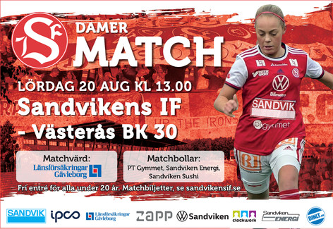 Lördag 20/8 tar damerna emot Västerås BK 30 på Jernvallen. Vid vinst passerar vi Västerås som ligger på tredje plats i tabelllen. Kom till Vallen och stötta tjejerna till fortsatt klättring mot toppen i tabellen!