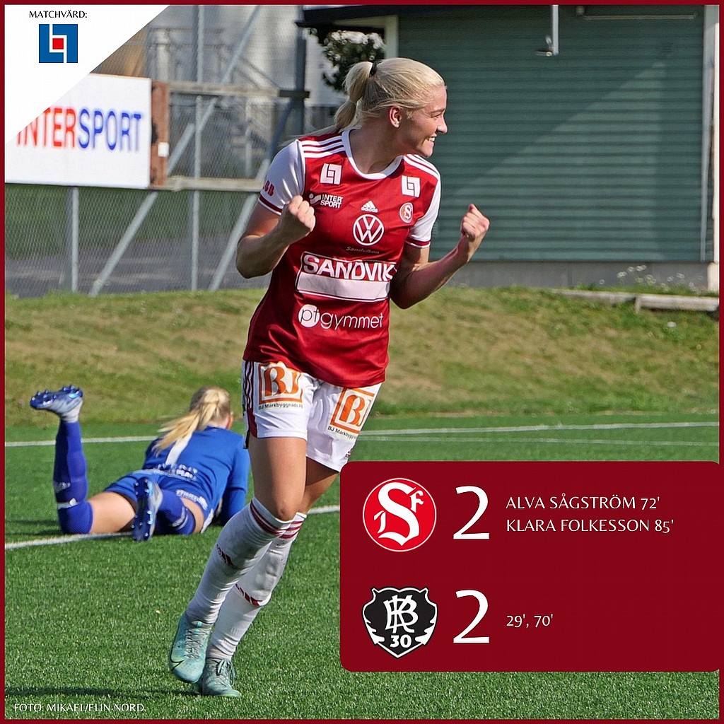 Men en stark sista del av matchen gav till slut 2-2 och en poäng. Målen kom på nick av inhoppande 15-åringen Alva Sågström, och ett distansskott upp i krysset signerat Klara Folkesson.